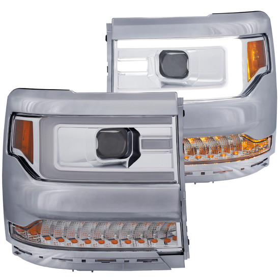 ANZO 16-17 Chevy Silverado 1500 Projector Headlights Plank Style Design Chrome w/ Amber - 111374