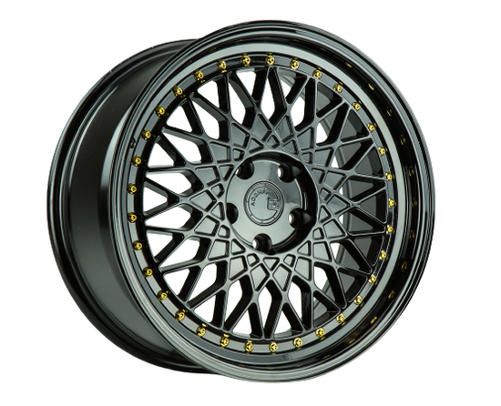 Aodhan AH05 5x100 / 5x114.3 17x9+25 Gloss Black W /Gold Rivets