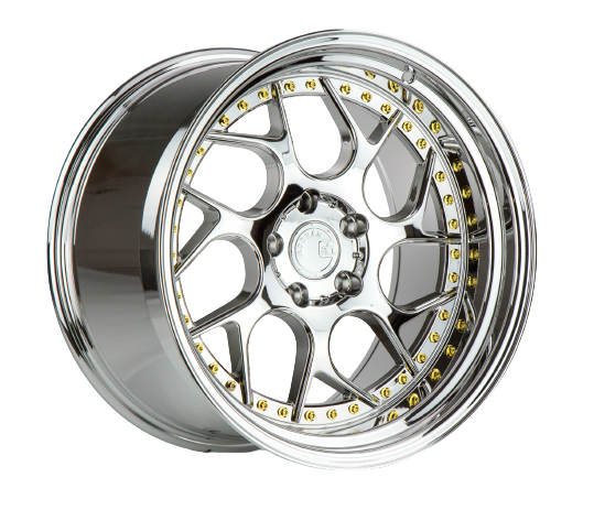 Aodhan DS01 5x100 18x9.5+35 Vacuum Chrome W/ Gold Rivets - DS11895510035VC
