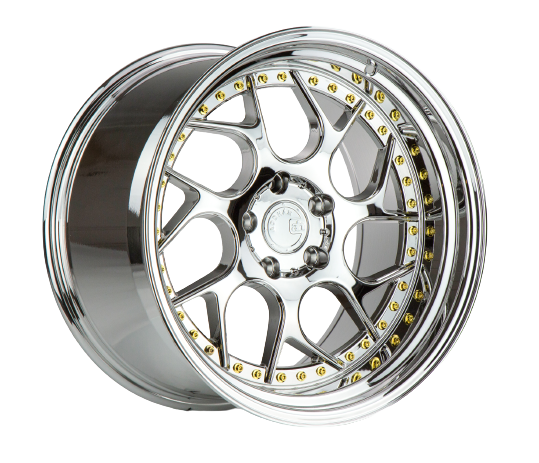 Aodhan DS01 5x114.3 18x9.5+22 Vacuum Chrome W/ Gold Rivets - DS118955114322VC