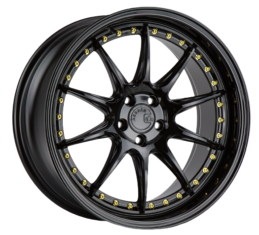 Aodhan DS07 5x114.3 18x8.5+35 Gloss Black W /Gold Rivets
