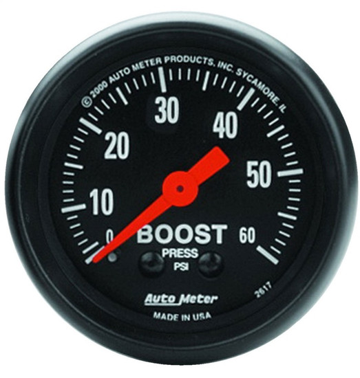 Autometer Z Series 52mm 0-60 PSI Mechanical Boost Gauge - 2617 from ThreePiece.us — your source for aftermarket wheels, rims, and accessories.
