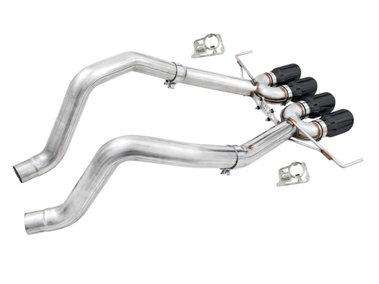 Raw, rowdy, and lightweight. The AWE Track Edition Axle Back is the perfect dose of steel for drivers looking for the loudest of the lot. Retaining the 3” diameter T304L stainless steel construction, the Track Edition Axle Back mirrors all of the precision engineering and perfect fitment found in its Touring Edition counterpart, minus the 180 Technology®. Instead, the Track Edition features straight pipe sections to deliver the thunder. The C7 Track Edition Exhaust is not for the faint of heart, and for this reason, Track Edition Exhausts cannot be returned based on sound preference. Choose your weapon wisely. If you're running the Track Edition and want to tone it down, we made it easy to convert catbacks from a Track Edition to a Touring Edition with our Conversion Kits. Easy! AWE includes our AFM Valve Simulators (required for the Corvette Stingray / Z51 Auto / Z51 Manual (2014-2016) / Grand Sport Auto) in every kit. The AFM Valve Simulators provide a worry-free solution for removing AFM valves from the exhaust route without causing a check engine light. They flaunt CNC laser-cut T304 stainless steel construction, and are a direct bolt-on to factory AFM valve motors. Simply remove the AFM valve motors from the factory exhaust, bolt them onto the AWE AFM Valve Simulator, and secure them safely to the vehicle. Once installed, the AFM valve motors will retain their factory operation, and keep your car’s ECU happy. Vehicles without AFM valves do not need to use the AFM Valve Simulators. All tip options are 4.5” slash-cut, and include the AWE logo and double-walling to ensure a mirror finish even under hard usage. All tips are individually adjustable, allowing depth into the bumper to be set according to personal taste.