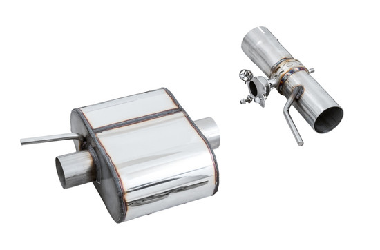 The AWE SwitchPath™ Conversion Kit adds a bespoke muffler on one side, and a valved straight section on the other. Factory valve behavior and interior control via Drive Select is retained.