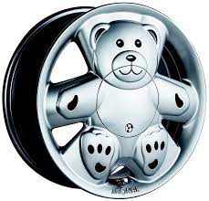 First on our list are the Ronal URS wheels, famously known as Teddy Bear Wheels. These 14-inch wheels, finished in white or crystal silver with black detailing, were a bizarre trend a decade ago. What makes them unique? Their teddy bear design! Yes, you read that right - wheels that resemble a teddy bear, available in both four and five-stud configurations. Imagine driving with these whimsical wheels!