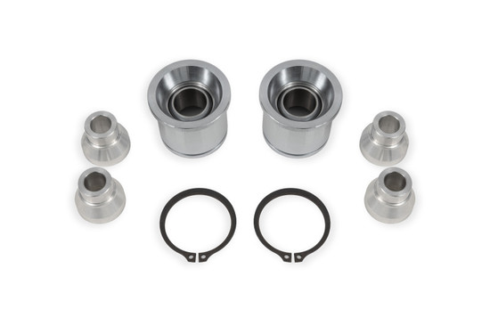 Minimize wheelhop and enhance the rear stability of your 2024 S650 Mustang by eliminating rear lower control arm bushing deflection with a set of Lower Control Arm Spherical Bearings from BMR Suspension. The stock rubber bushings are great for absorbing NVH, but do little for performance. The large spherical bearings in BMRs rear Lower Control Arm Spherical Bearing Kit simply eliminate bushing deflection, transferring power instead of absorbing it. BMR Suspensions rear Lower Control Arm Spherical Bushings (CBK774) drastically decreases lower control arm movement by eliminating deflection of the factory rubber bushings. BMR uses heavy-duty 1-inch spherical bearings in machined bearing cups to replace the factory rubber bushings. The cup and bearing assembly presses into the lower control arms. CNC-machined billet aluminum spacers complete the assembly. This allows for a perfect fit and increased performance for any driving style. The 1-inch bearing in the CBK774 has an impressive load rating of 82,800-pounds and has a center ball diameter of 1.5-inches. This bearing is one of the most commonly used 1-inch spherical bearings in the industry, with an impressive track record.