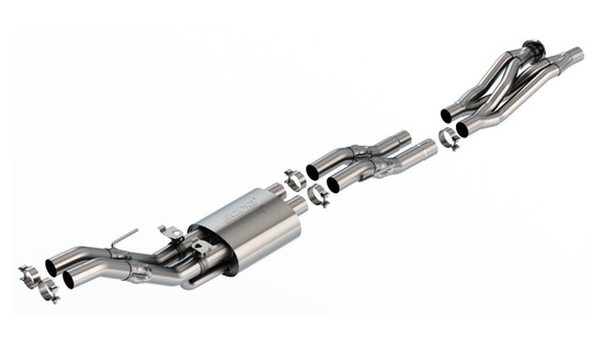 This 3" diameter Mid-Section includes Active Exhaust Valves. The ATAK sound level delivers and an aggressive, race-bred sound without any drone. It features our Polyphonic Harmonizer and SwitchFire technology. BORLA'S Polyphonic Harmonizer Technology utilizes patented units that contain pipes of different diameters and lengths to create multiple exhaust notes that harmonize to deliver a clean, rich, full-bodied sound. Completely eliminating the turbulent center intersection of a standard X-Pipe, BORLA'S patented SwitchFire design truly blends the combustion pulses from both sides of the engine for improved performance and a custom sound. It fits with either the O.E. tail pipes or BORLA tail pipes 60727BC and 60727CFBA.