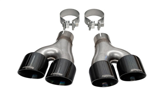 CORSA Performance(R) Pro Series(R) tips are made from dual-walled 304 stainless steel and feature a lustrous black PVD coating. The dual-wall construction protects against heat distortion and maintains lasting visual appeal. Each tip is adorned with high-definition, precision laser engraving that provides unmatched detail. CORSA Performance tip kits are designed to fit directly to CORSA exhaust systems.