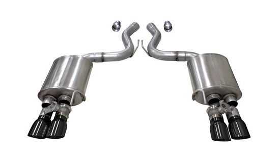 Corsa Active Valved Exhaust Systems are designed to be the perfect upgrade to your vehicle's exhaust system. The axle-back systems produce a "Touring-to-Sport" sound level, providing you the with sound you want from your Ford Mustang. The "active" sound progression maintains a quiet start and amplifies the sound throughout the gear range. Corsa's patented RSC Technology eliminates any drone when cruising down the freeway. These bolt-on exhaust systems are constructed from premium stainless steel with a choice of polished, black or gunmetal PVD tip finish for superior durability and long-lasting good looks.