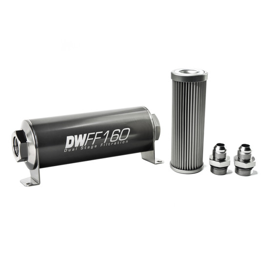 DeatschWerks Stainless Steel 8AN 10 Micron Universal Inline Fuel Filter Housing Kit (160mm) - 8-03-160-010K-8 - DWK8-03-160-010K-8