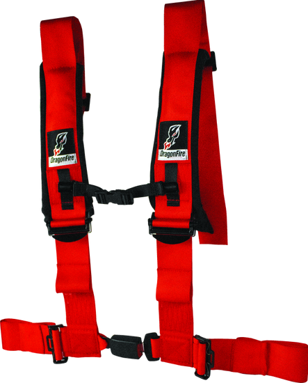 DragonFire Racing Harness- H-Style- 4-point- EZ-Adjust- 3in Buckle- Red - 522047