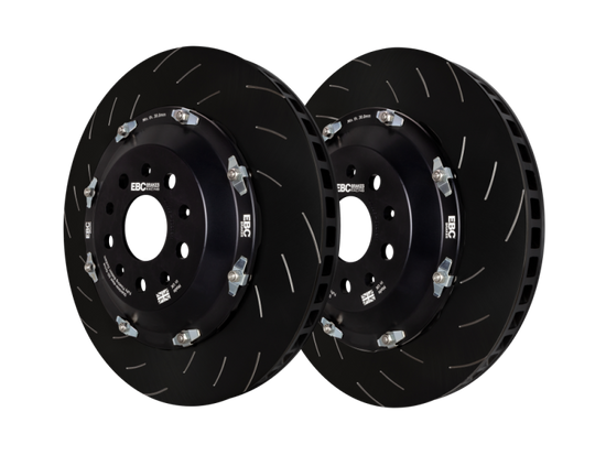 Upgrading to an EBC 2-piece disc will shave crucial kilogrammes off a vehicles un-sprung rotational mass, leading to sharper turn in, improved tyre road holding, better fuel economy and an increase to BHP at the wheels. Best of all, when the cast iron friction ring becomes worn after a period of use, the outer ring alone can be replaced, allowing the centre hub and stainless bobbins to be re-used, reducing long term running costs.