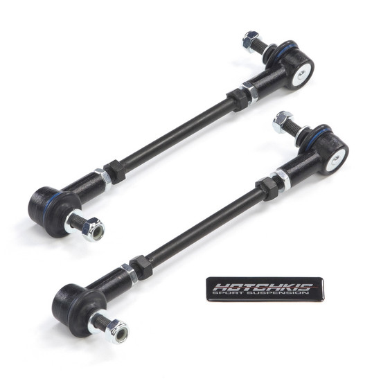 Hotchkis Sport Suspension 25834F 2007-2009 BMW E92 Front Endlink Kit (Front Links Only). Many E90/E92 BMW 3 Series and M3 owners choose to upgrade their cars with stiffer sway bars but often these upgrades can cause the factory end links to fail. Seeing this need during sway bar development Hotchkis Sport Suspension has met this challenge with our Sport End Links which use a combination of high articulation rod ends for maximum range of motion and quiet greasable polyurethane bushings for comfort. These Sport End Links make a great addition to any BMW sway bar upgrade. These end links are available separately for those looking to upgrade competitors systems or factory bars. For the ultimate in performance take a look at our Sport Sway Bars sets as well which come complete with upgraded end links. Features: Specifically designed for the BMW E90/E92. High articulation rod ends for maximum range of motion Quiet greasable polyurethane bushings for comfort. Height adjustable for optimum fit. Front Length Range: 11.5 in. /- 0.5 in. Increased sway bar effectiveness. Maximum range of motion. Increased end link strength.