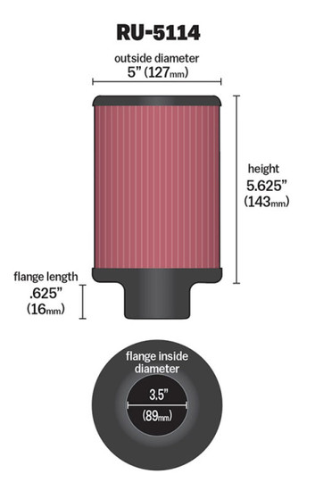 K&N Filter Universal Rubber Filter 3.5in Flange ID x 5in OD x 5.625in H - RU-5114