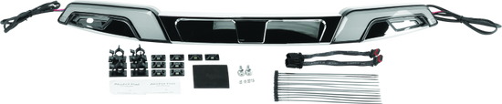 Includes (1) Chrome Left trim clutch side, (1) Chrome Right trim (brake side), (1) Center trim, (2) Wiring adapters, (1) Rubber gasket, (12) Zip ties, (6) Cord keepers with adhesive backing