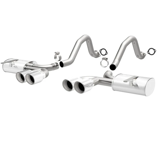 The MagnaFlow Chevrolet Corvette Street Series 16732 brings enhanced engine sound and dyno-proven performance to your 5.7L 1997-2004 Chevrolet Corvette with a healthy helping of our deep, resonant signature exhaust note at Moderate exterior and Mild interior sound levels. Thanks to its durable, corrosion resistant stainless steel design, this Chevrolet Corvette exhaust system will handle whatever tarmac you decide to leave your mark on. This performance exhaust kit features an axle-back layout designed to replace your Chevrolet Corvette’s exhaust system from near the rear axle on back. With its fast-flowing, mandrel bent 2.5in. main piping and 2 Straight-Through mufflers ending in a Quad Center Rear exit with 4in. Polished Welded-Double Wall-Angle Cut-Rolled Edge-Resonated tips, your ride will be sounding as awesome as it looks. Extensive 3D scanning during development has resulted in a direct-fit design that you can easily install yourself. 16732 is produced using CNC precision robotic manufacturing techniques and is backed by MagnaFlow’s 1-year limited finish warranty and limited lifetime construction warranty.