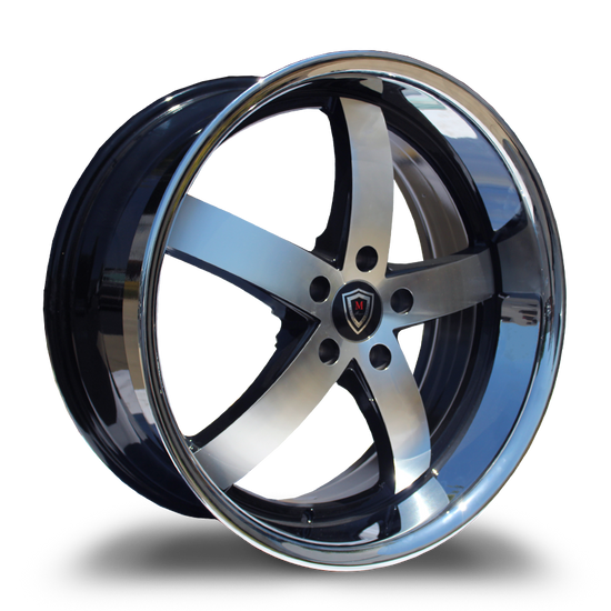 MARQUEE WHEELS M5330B 5x114.3 22x10.5+40 BLACK MACHINED/ STAINLESS LIP - 5330B22105511440BMSS