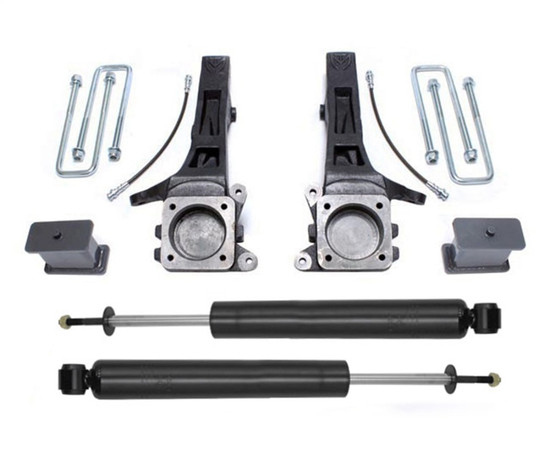 The Maxtrac Suspension 4-inch lift for the Toyota Tacoma platform is a cost-effective way to lift your 2WD wheel drive truck without breaking the budget. We do this by taking a factory height spindle and lowering the wheel hub position, which in turn raises the vehicle up while maintaining a factory-like ride and turning radius. By doing this, you eliminate the need to install expensive crossmembers that are labor intensive and require factory frame cuts. The spindles come with extended, DOT compliant, stainless steel braided brake lines. The rear lift comes with Maxtrac twin-tube shocks, lift blocks and U-bolts. The end result, you achieve a lifted truck with a leveled stance for a fraction of the cost of a standard 4WD kit.
