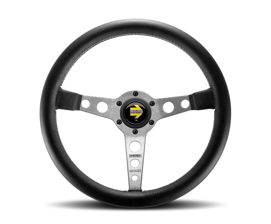Momo Prototipo Steering Wheel 350 mm - Black Leather/Wht Stitch/Brshd Spokes - PRO35BK0S - MOMPRO35BK0S