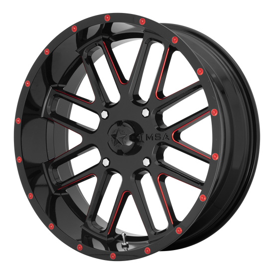 MSA Offroad Wheels M35 BANDIT 4X137 20X7 +0 GLOSS BLACK MILLED WITH RED TINT
