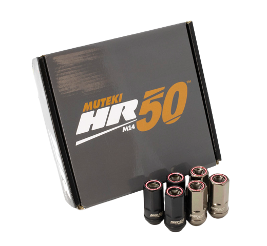 When installing aftermarket wheels, the proper lug nuts make all the difference. Whether you need wheel locks to keep your custom rims safe from theft or are looking to upgrade the style of your car with some neochrome lug nuts threepiece.us has you covered. These MUTEKI HR50 OPEN END LUG KIT 14X1.50 50MM BLACK / RED RING are a high quality set of lug nuts that are a great cheap upgrade for your car. Installing aftermarket wheels?Depending on which set of custom rims you purchase you will need tuner style lug nuts, or spline lug nuts, to safely install your wheels. Most factory OEM wheels use a ball seat lug nut, while aftermarket wheels require a cone seat or conical lug nut." please note, due to the size of our catalog, and images provided by manufacturers, accessory products such as lug nuts, hubcentric rings, spacers, etcÂ… may vary from the images. If the appearance of these products is important to you PLEASE CONTACT A REPRESENTATIVE to receive exac tphotos of the product you will be receiving.Regrettably we're unable to accept returns on accessory products due to image discrepancies.