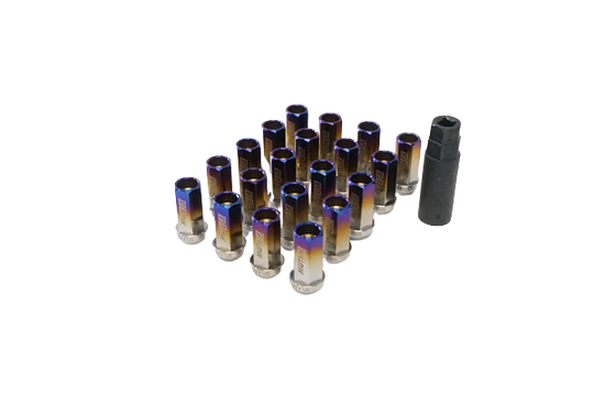 When installing aftermarket wheels, the proper lug nuts make all the difference. Whether you need wheel locks to keep your custom rims safe from theft or are looking to upgrade the style of your car with some neochrome lug nuts threepiece.us has you covered. These MUTEKI TITANIUM NUT OPEN END 14X1.50 45MM BURNED TITANIUM are a high quality set of lug nuts that are a great cheap upgrade for your car. Installing aftermarket wheels?Depending on which set of custom rims you purchase you will need tuner style lug nuts, or spline lug nuts, to safely install your wheels. Most factory OEM wheels use a ball seat lug nut, while aftermarket wheels require a cone seat or conical lug nut." please note, due to the size of our catalog, and images provided by manufacturers, accessory products such as lug nuts, hubcentric rings, spacers, etc