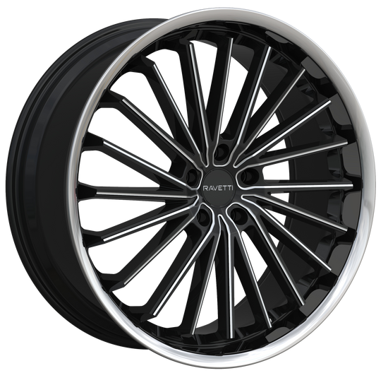 RAVETTI M14 5X115 20x10 +25 BLACK AND MILLED STAINLESS LIP - RAV-M14-2164BMW