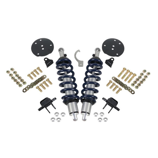 Front HQ Coil-Overs for 2015-2023 Ford F-150 4WD. Includes a pair of rebound adjustable shocks, springs, spring mounts and delrin spring washers.