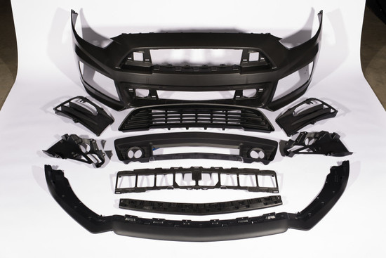 The 2015-2017 Complete ROUSH Mustang Front Fascia Kit gives the 6th gen Mustang a more aggressive, performance oriented look. The completely re-designed fascia improves airflow into the engine bay and around the wheels. Using Original CAD data from Ford, ROUSH is able to manufacture parts that require no trimming, cutting or sanding for a perfect fit. This means superior durability, impact and heat resistance as well as factory level fitment. All mounting hardware is included with each kit.The Complete ROUSH Front Fascia Kit includes ROUSH's High-Flow Upper Grille and Lower opening as well as ROUSH's Front Chin splitter. The re-designed upper and lower openings help feed more cool air into the engine bay. The Front Chin Splitter creates extra downforce and prevents front end lift at speed. The Side Aero Pockets create a wind curtain for air flow around the front wheels.