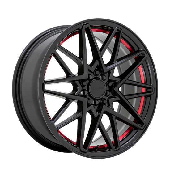 Ruff CLUTCH 5X108/5X114.3 18X8 +38 GLOSS BLACK W/ MACHINED RED INNER LIP