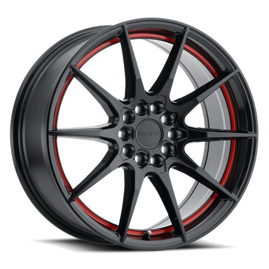 Ruff SPEEDSTER 5X108/5X114.3 17X7.5 +38 GLOSS BLACK W/ RED STRIPE