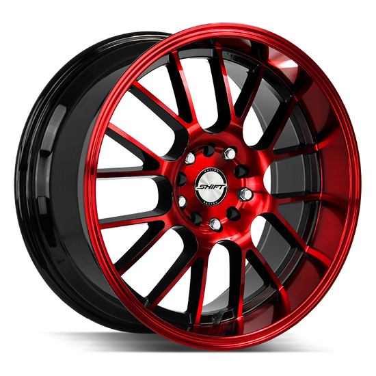 Shift Crank 5x100/5x114.3 18x8.5 +30 Gloss Black Candy Red Machine