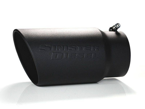 Easily upgrade the looks of your diesel truck's exhaust system using this ceramic coated exhaust tip from Sinister Diesel. It works with Duramax, Cummins, and Powerstroke diesel exhaust systems, expanding the exhaust outlet to 6 inches. A black finish matches other blacked-out parts on your truck, giving that aggressive appearance you crave., Sinister Diesel makes each exhaust tip out of 304 stainless steel, so it resists corrosion. The black ceramic coating hides soot and dirt, plus it cleans up nicely. Made to fit any 5-inch exhaust tip, the opening on the Sinister Diesel exhaust tip measures 6 inches. It'simply clamps on using simple hand tools., Features:5" Inlet and 6" Outlet, Black Ceramic Coating, 304 Stainless Steel Construction, Single Wall Construction with Rolled Outlet Edge, Simple 1-Step Clamp-On Installation (No Welding Required), Universal Fit,