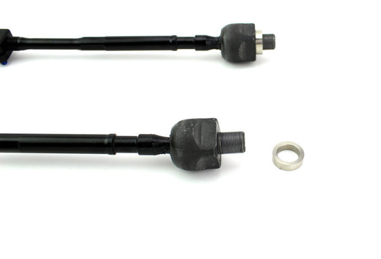 NB Miata Front Outer Tie Rod Ends (TRE) allow for bumpsteer adjustment by allowing the tie rod end pivot to be relocated with the use of spacers. Reduced bumpsteer results in smoother steering and reducing lap times. Our Stainless Steel steering rack spacer allows for increased steering angle on drift cars. Inner Tie Rod ends are also included. Sold as a pair. Made in the USA! SPL Parts NB Miata Front Tie Rod Ends Features: FK Teflon lined Rod Ends provide maximum articulation Electroless Nickel plated hardened 4140 Chromoly tapered studs for precise fitment in the knuckle Inner tie rod with steering rack spacer allows for increased steering angle 1/4" and 1/8" Stainless Steel spacers to fine tune bumpsteer Black Anodized CNC Machined 6061-T6 Billet Aluminum curved turnbuckle to maximize articulation Application: 1999-2005 Mazda Miata (NB) Installation Instructions: SPL Parts Miata Tie Rod Ends