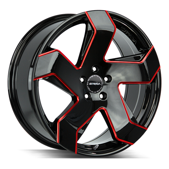 Strada Coltello 5x115 22x9 +15 Gloss Black Candy Red Milled Edge - S65251515GBMLRE
