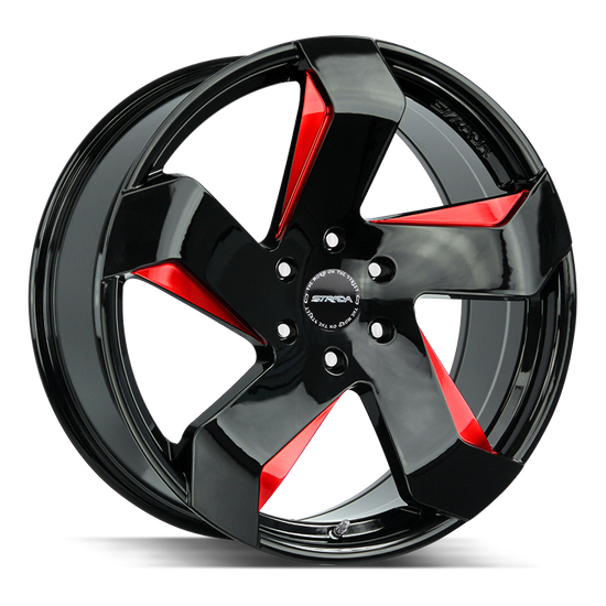 Strada Coltello 6x139.7 24x10 +24 Gloss Black Candy Red Milled