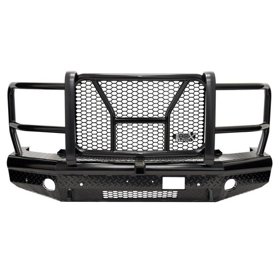 Westins HDX Bandit Bumper combines a heavy duty diamond plate steel bumper constructed of schedule 40 steel pipe with a stylish grille guard featuring 2 in. diameter outer wraparound wings and 2 3/4 in. wide upright rubber strips. Designed to protect headlights, grille, hood and front fenders from road hazards, debris and wildlife damage. Features a stylish metal honeycomb mesh screen, which allows maximum airflow to the intercooler or radiator area while accenting the front end styling with a clean and rugged look. Removable mesh screens allow for factory camera and adaptive cruise control options available on some late model Ford applications. HDX Bandit Bumper includes a built-in 2 in. receiver hitch and (2) heavy duty 9,500 lbs bow shackle mounts, capable of delivering multiple towing options. Compatible for factory fog lamps or LED post mount lights. In addition, some late model Ram and Chevrolet applications feature provisions for factory parking sensors. Bolt-on installation with hardware and mounting brackets included. Available in black powder coat finish.
