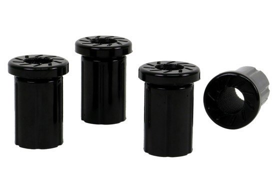 A critical service item for any leaf sprung vehicle. High kilometres and heavy load carrying causes excessive wear on rubber bushings. Whiteline's signature black bushings are made tough and offer outstanding abrasion resistance, high load bearing capability (4WD's, utes and towing), flexibility, increased tensile strength and chemical resistance to oil, grease, ozone and weathering.