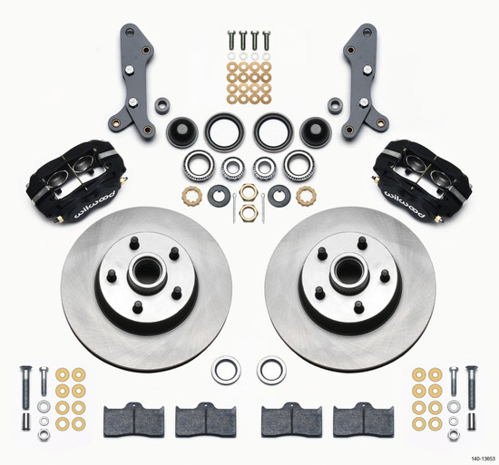 Wilwood's Classic Series front disc brake kits for 1960 to 1968 Ford & Mercury full size offer disc brake upgrade solutions for OEM Drum spindles. These kits feature the FDL-M four piston forged aluminum caliper and 11.30" diameter x 0.94" thick one-piece rotors. The FDL-M caliper is a modified version of the time-tested Forged Dynalite caliper, and provides the greatest amount of wheel clearance of any four piston caliper in its size class. The OEM style one-piece cast iron rotors with integrated hubs simplify installation while providing superb dimensional stability and wear resistance. These versatile kits are easily optioned to suit the braking requirements and style preferences for a daily driver or the most discriminating show enthusiast. Intended vehicle applications require no modifications for installation, and clear most 14" OEM wheels. Classic Series FDL-M kits can be used with either manual or power boost master cylinders, and come complete with calipers, rotors, brackets, hardware and detailed installation instructions.