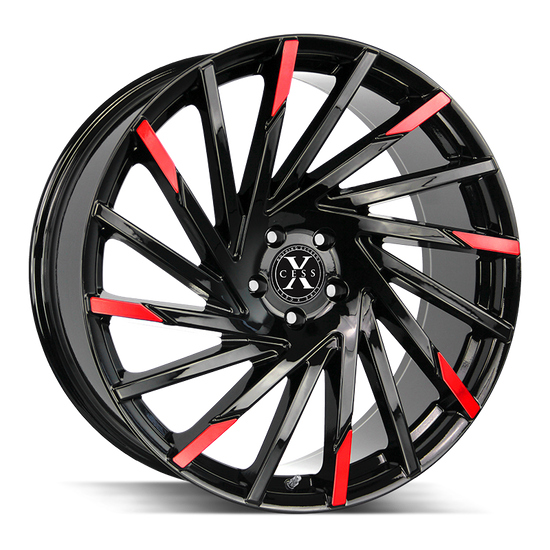 Xcess X02 5x120 20x8.5 +35 Gloss Black Machined Red Tips