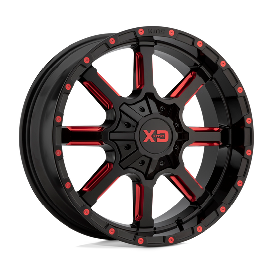 XD XD838 MAMMOTH 8X165.1 22X10 -18 GLOSS BLACK MILLED WITH RED TINT CLEAR COAT
